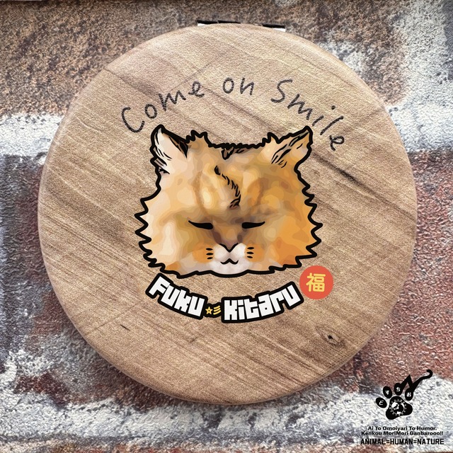 コンパクト ミラー | ウッド調 レザー (非動物性) 鏡 |【ふくきたるデザイン x No #82 テリーさん】 ねこ・猫・cat・アニマル・動物|メンズ・レディース・男女兼用