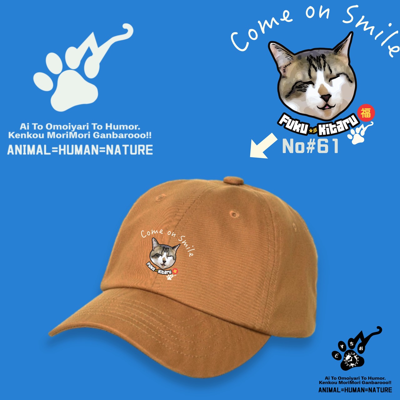 コットン キャップ 【ふくきたるデザイン x No #61 青龍さん】|帽子・ねこ・猫・cat・アニマル・動物|メンズ・レディース・ユニセックス