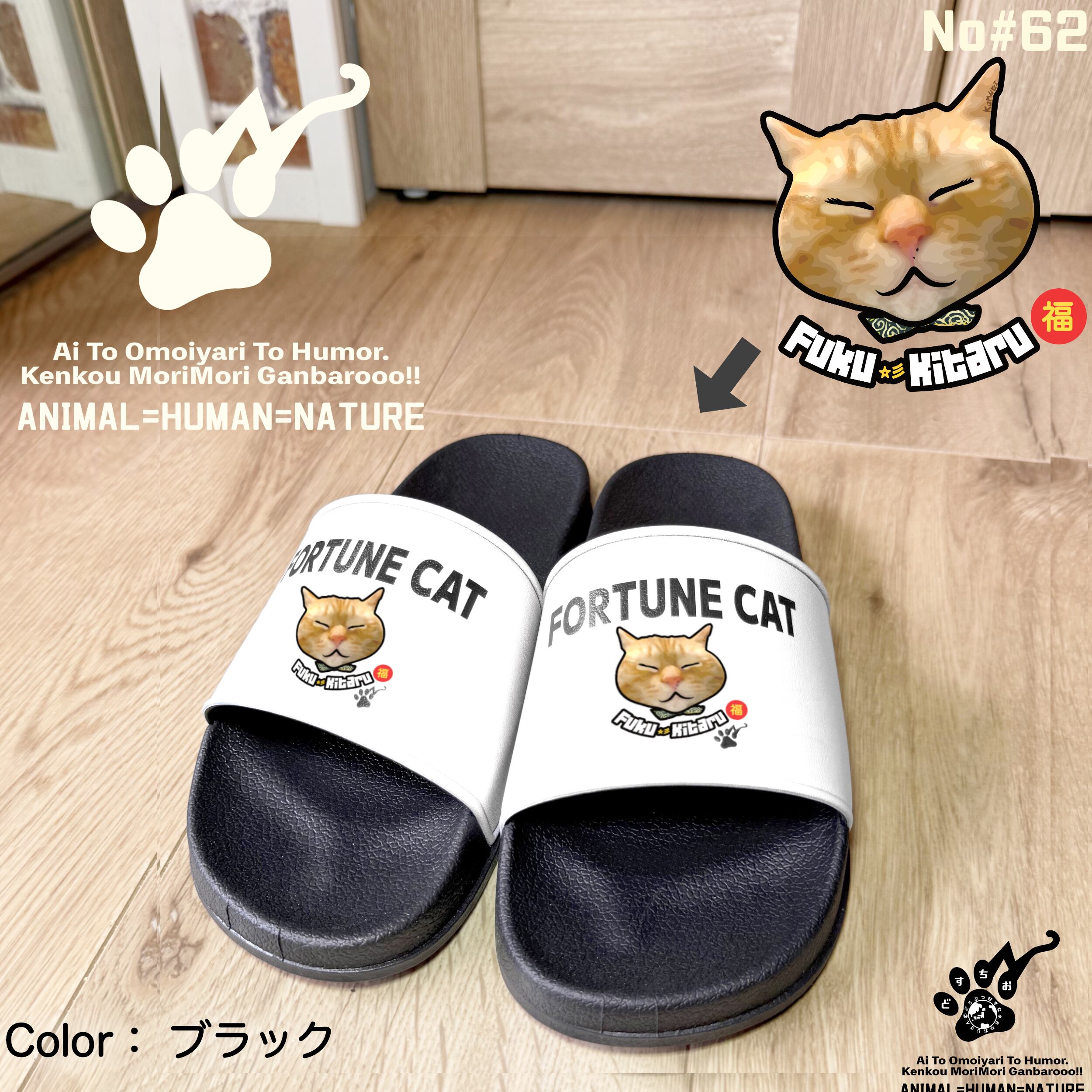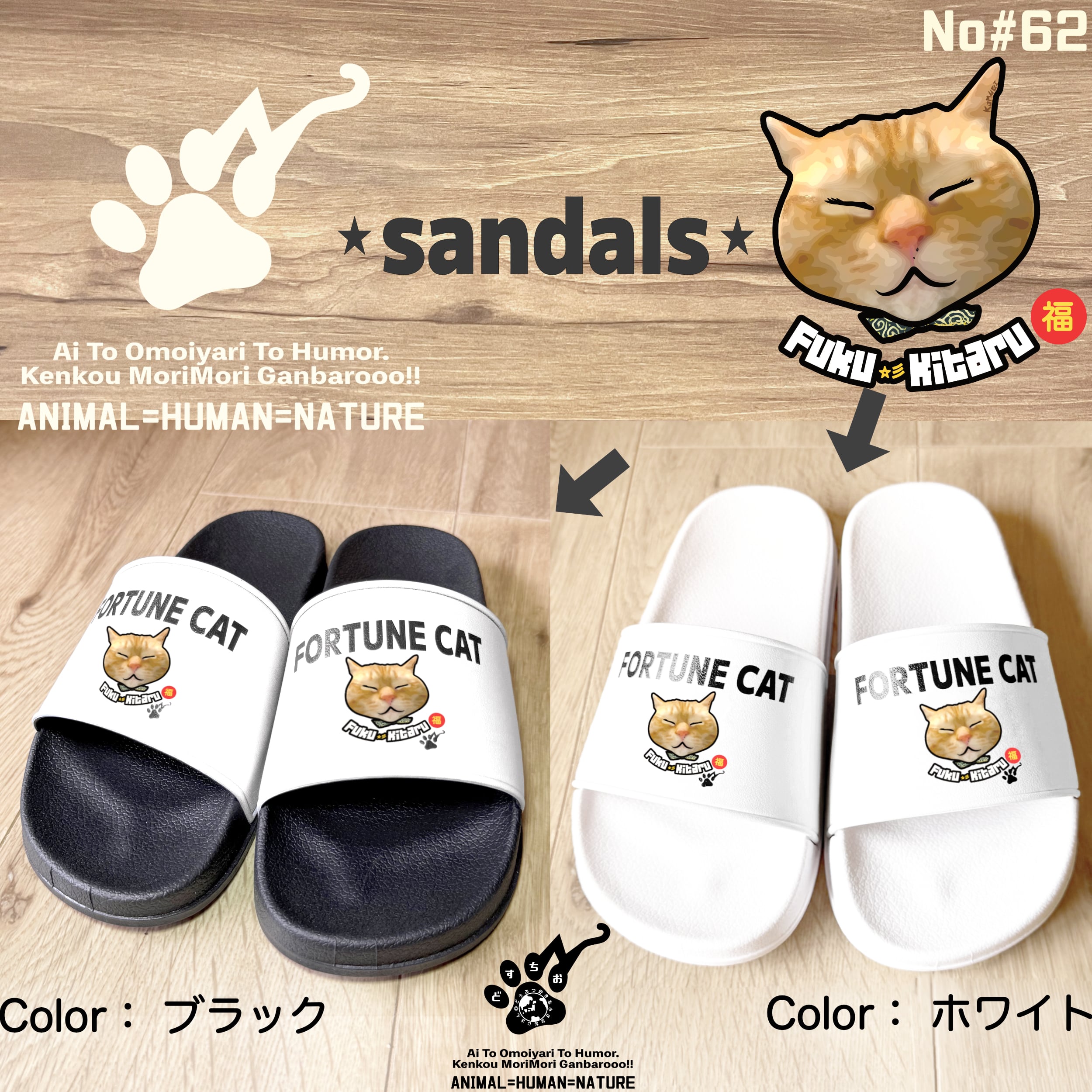 シャワーサンダル【ふくきたるデザイン×No#62 こむぎさん】| ねこグッズ/外履き/ユニセックス・メンズ・レディース | ねこ・猫・cat・アニマル・動物