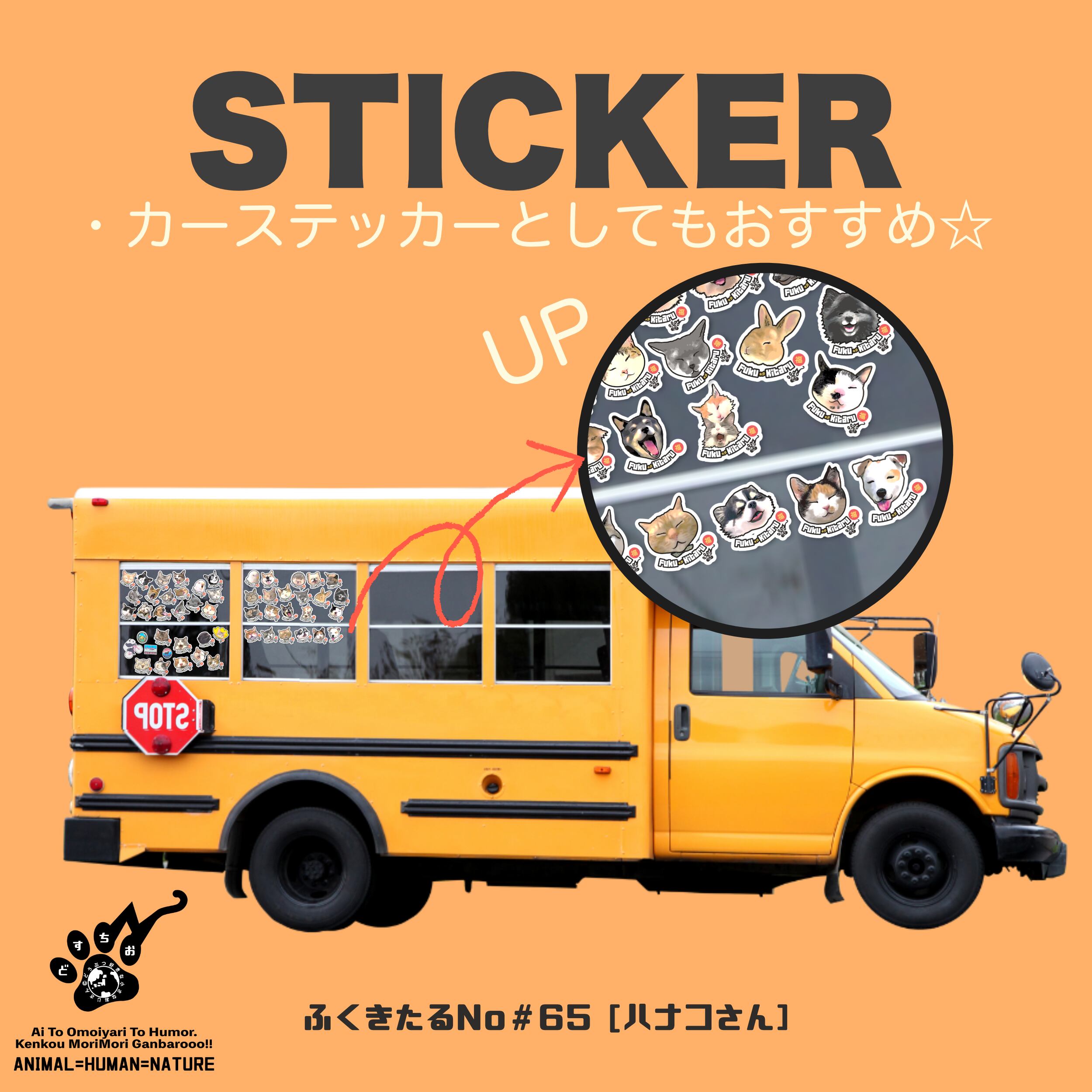 【耐水・貼り直しOK】丈夫な ステッカー【ふくきたるデザイン x No #65 ハナコさん】| カーステッカー対応 | いぬ・犬・dog・アニマル・動物・メンズ・レディース・ユニセックス