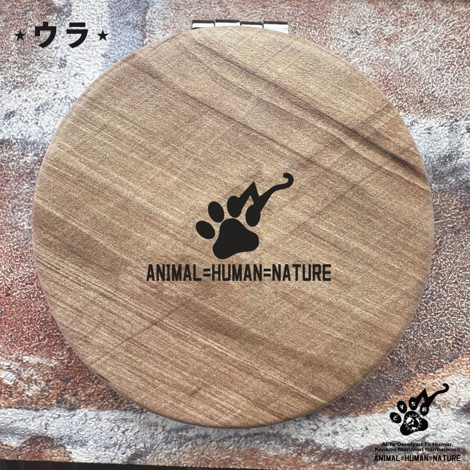 コンパクト ミラー | ウッド調 レザー (非動物性) 鏡 |【ふくきたるデザイン x No #65 ハナコさん】 いぬ・犬・dog・アニマル・動物 | メンズ・レディース・ユニセックス