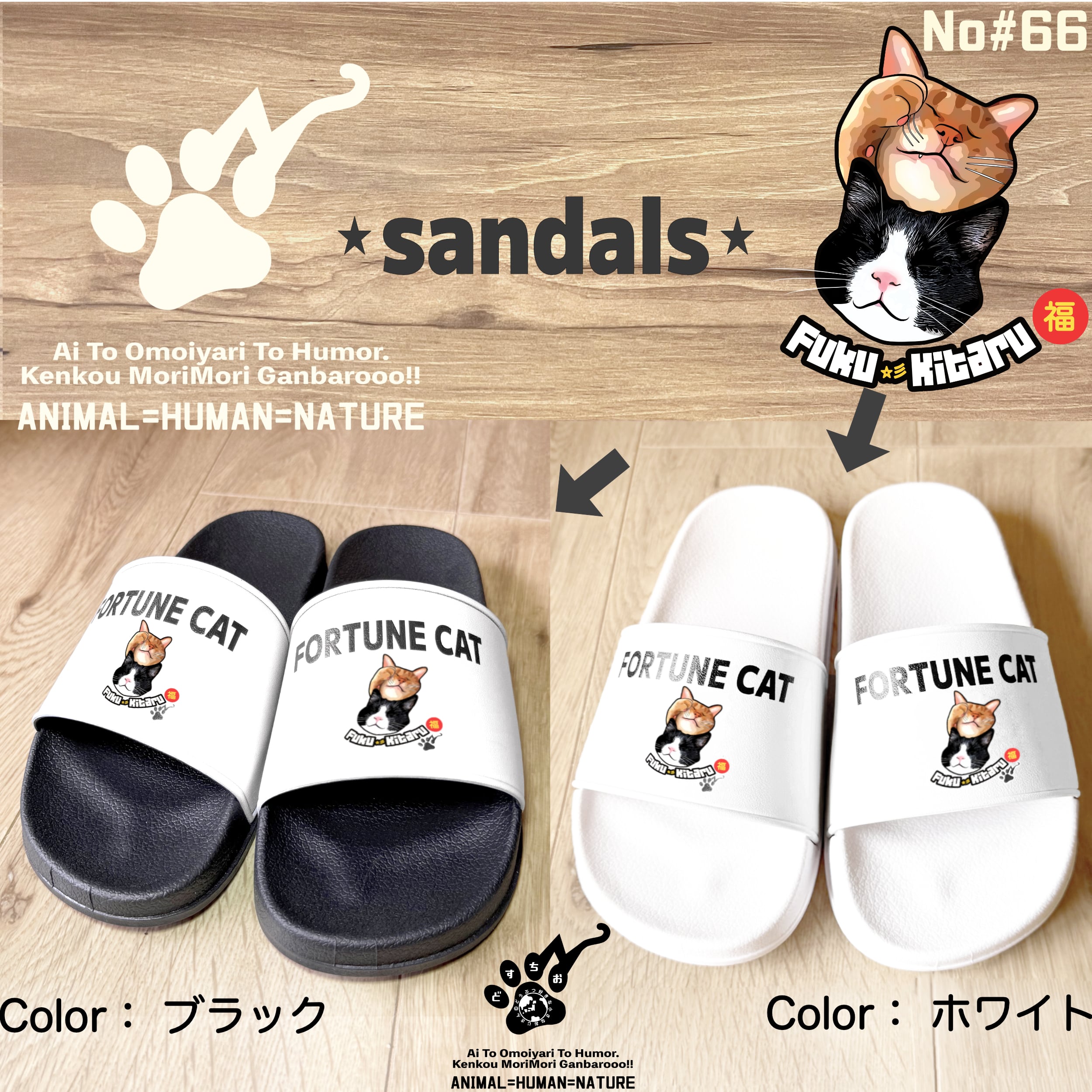 シャワーサンダル【ふくきたるデザイン×No#66 小麦&コハクさん】| ねこグッズ/外履き/ユニセックス・メンズ・レディース | ねこ・猫・cat・アニマル・動物