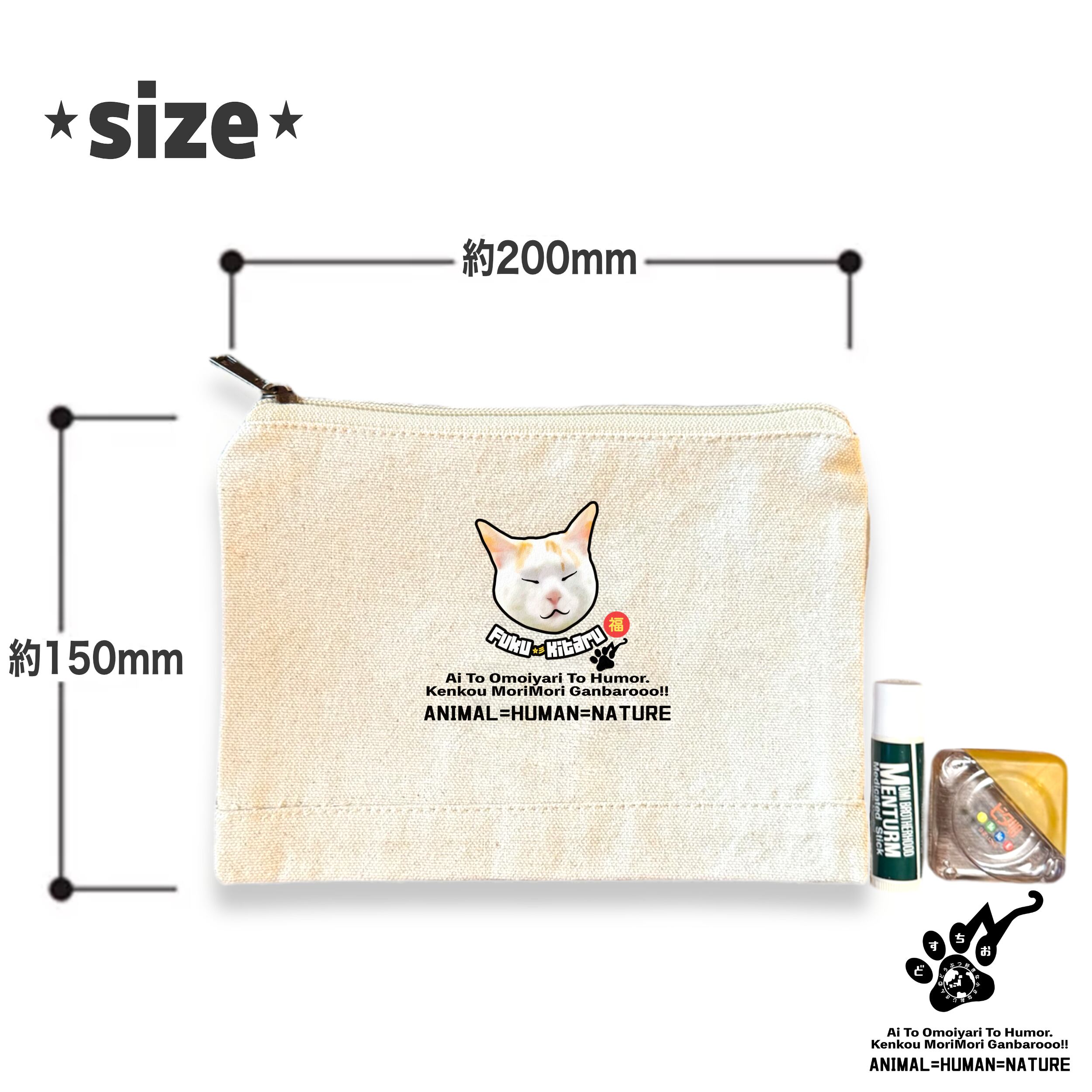 オーガニックコットン ポーチ【ふくきたるデザイン x No #68 まろさん】|キャンバス生地・ねこ・猫・cat・アニマル・動物|メンズ・レディース・ユニセックス