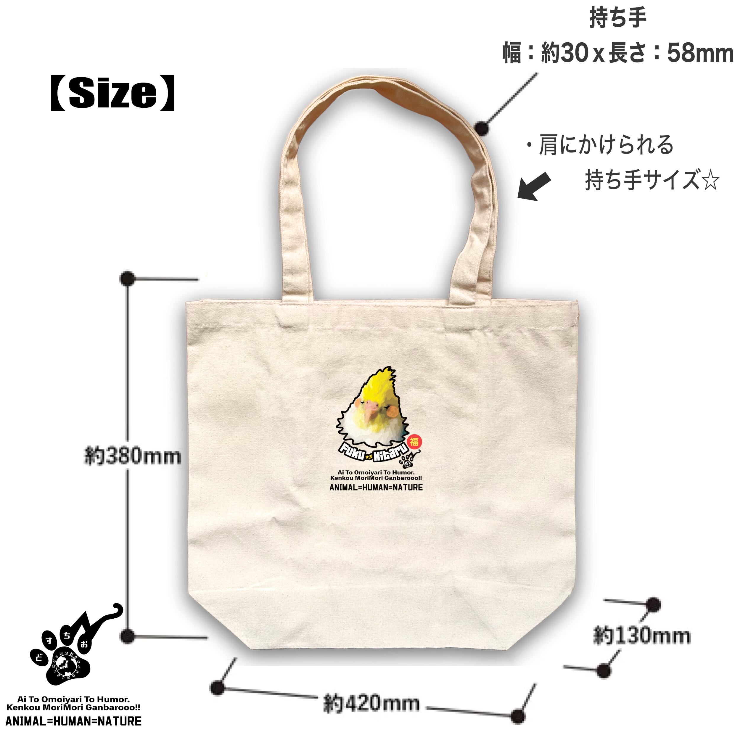 オーガニックコットン トートバッグ 【ふくきたるデザイン x No #71 Hibikiさん】|キャンバス生地・鳥・インコ・とり・トリ・動物・アニマル|メンズ レディース ユニセックス