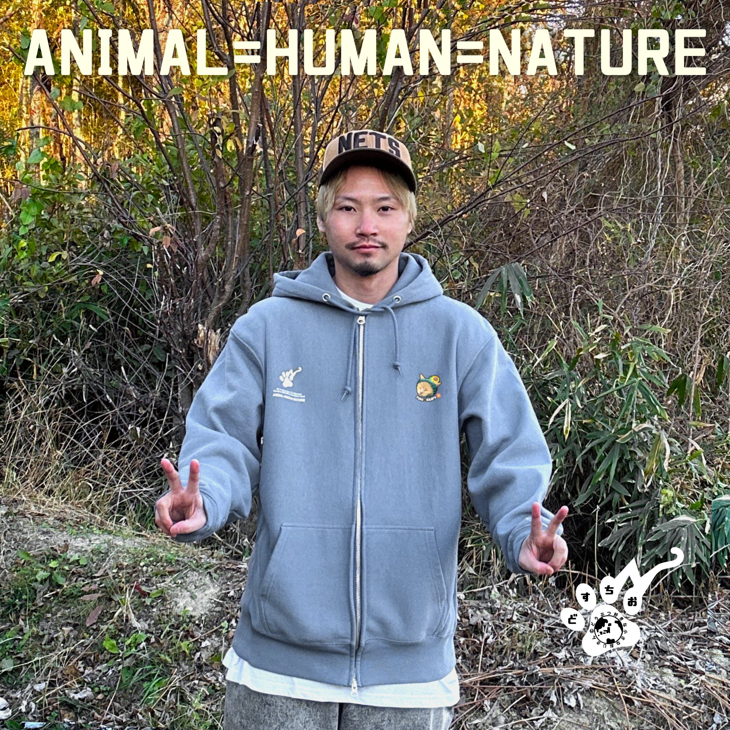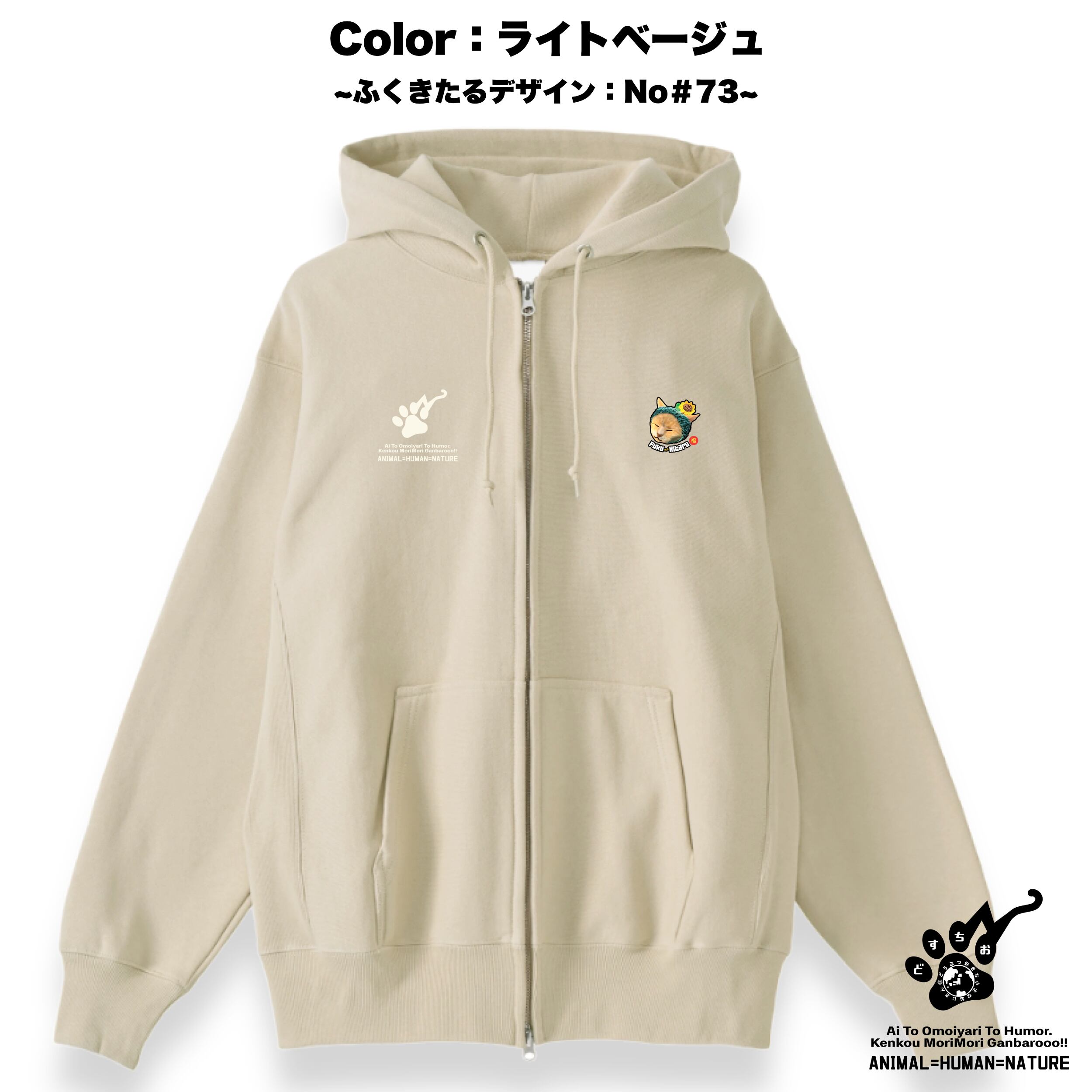 ジップアップ パーカー | 裏起毛 厚手 | スウェット | 長袖 トレーナー 【 ふくきたるデザイン x No #73 ボブさん 】 ねこ 猫 cat アニマル 動物|メンズ・レディース・男女兼用