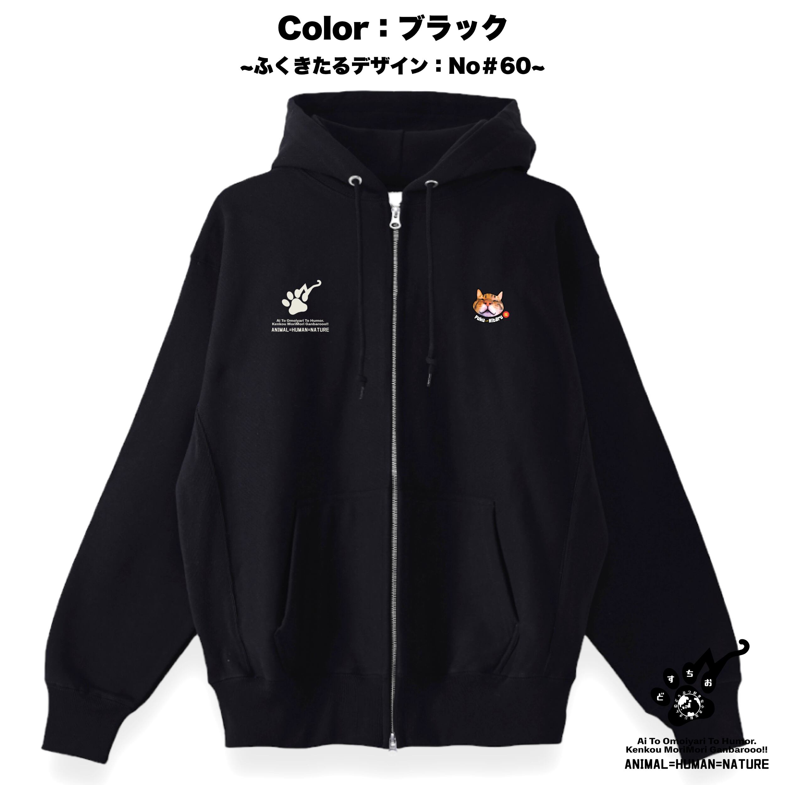 ジップアップ パーカー | 裏起毛 厚手 | スウェット | 長袖 トレーナー 【 ふくきたるデザイン x No #60 アルトさん 】 ねこ 猫 cat アニマル 動物|メンズ・レディース・男女兼用
