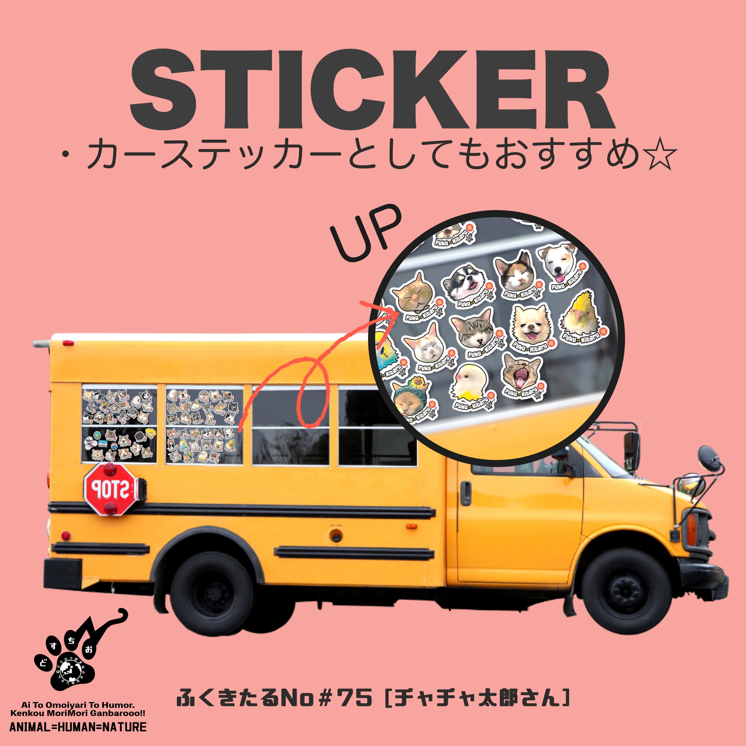 【耐水・貼り直しOK】丈夫な ステッカー【ふくきたるデザイン x No #75 チャチャ太郎さん】| カーステッカー対応 | ねこ 猫 cat アニマル 動物|メンズ・レディース・男女兼用