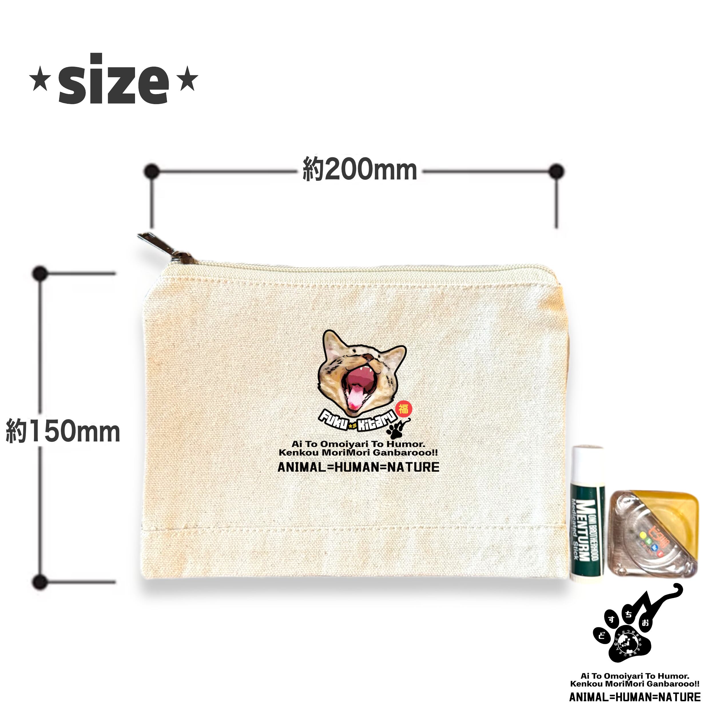 オーガニックコットン ポーチ【ふくきたるデザイン x No #75 チャチャ太郎さん】|キャンバス生地・ねこ・猫・cat・アニマル・動物|メンズ・レディース・男女兼用