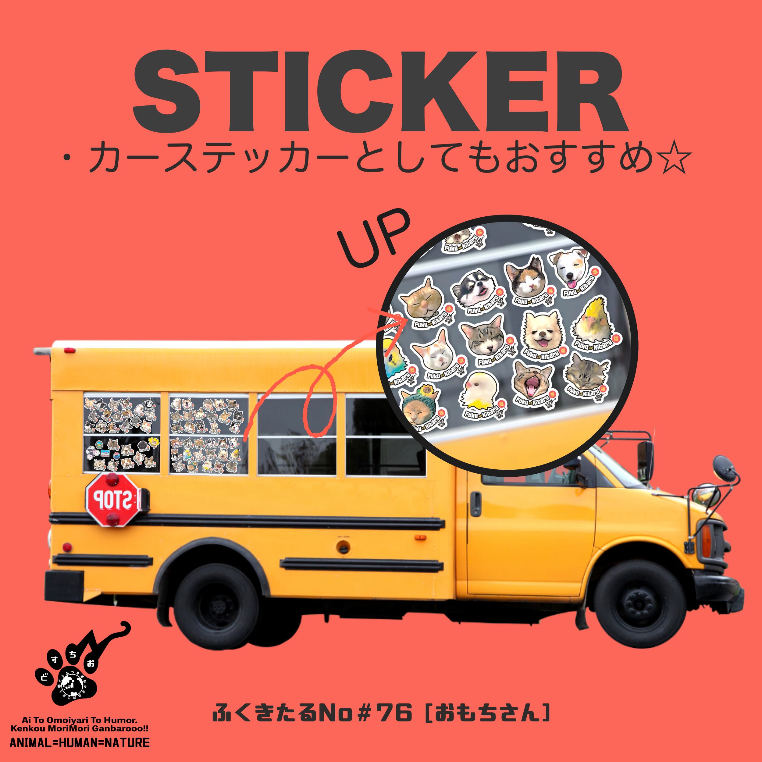 【耐水・貼り直しOK】丈夫な ステッカー【ふくきたるデザイン x No #76 おもちさん】| カーステッカー対応 | ねこ 猫 cat アニマル 動物|メンズ・レディース・男女兼用