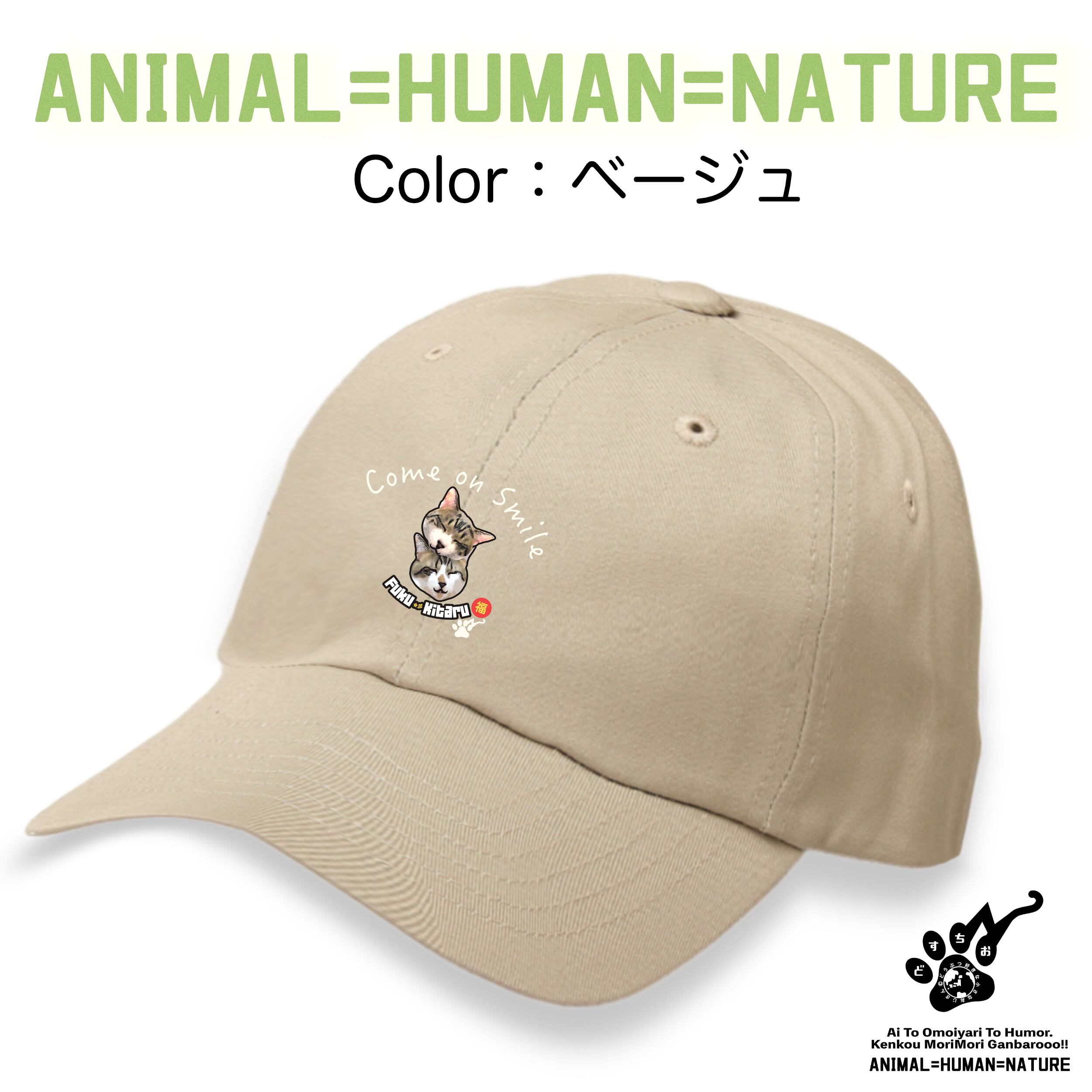 コットン キャップ 【ふくきたるデザイン x No #77 青龍&白虎さん】|帽子・ねこ・猫・cat・アニマル・動物|メンズ・レディース・男女兼用