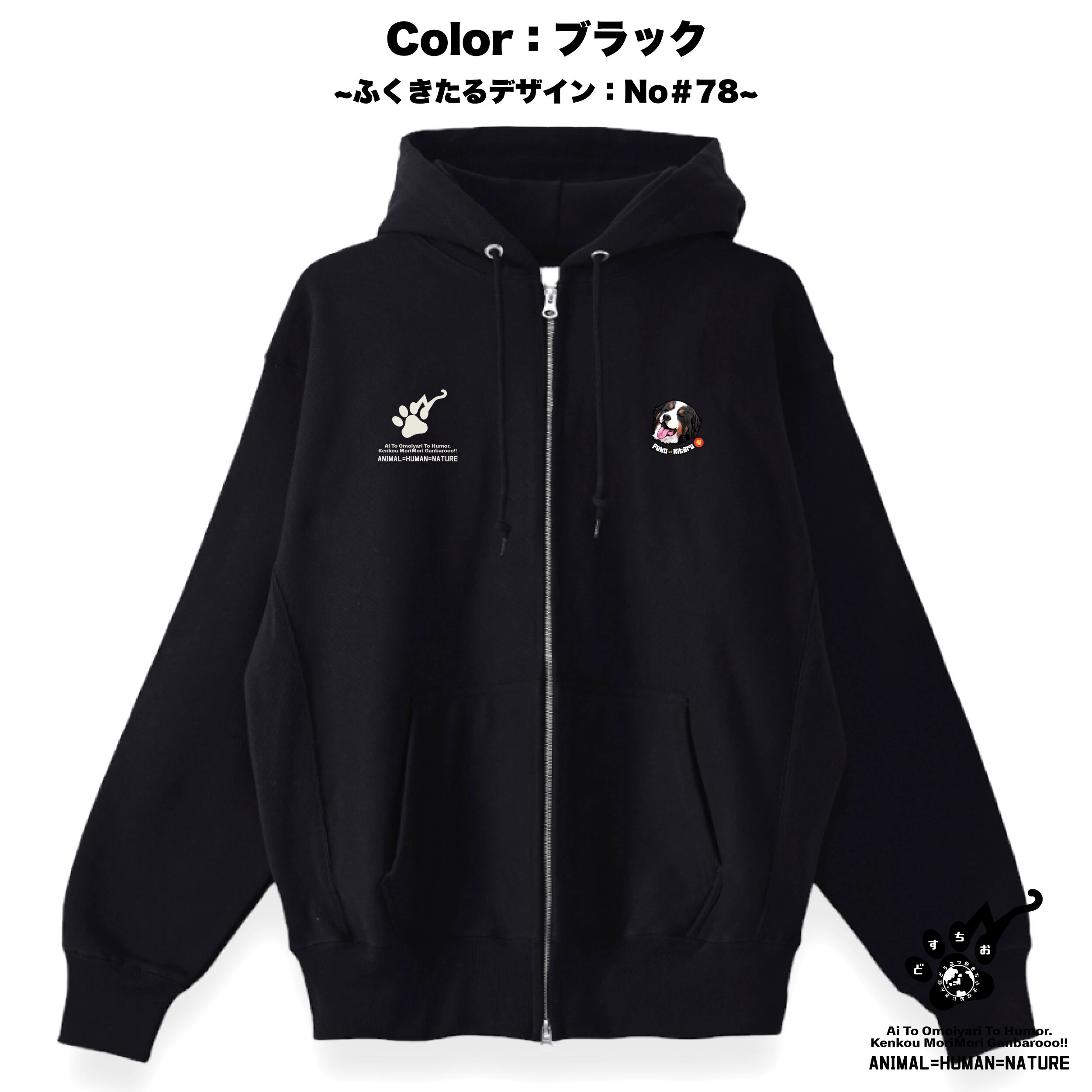 ジップアップ パーカー | 裏起毛 厚手 | スウェット | 長袖 トレーナー 【 ふくきたるデザイン x No #78 サニーさん】 いぬ・犬・dog・アニマル・動物 | メンズ・レディース・男女兼用