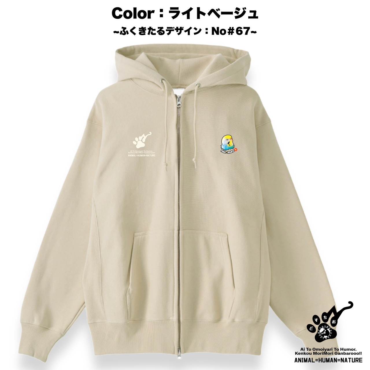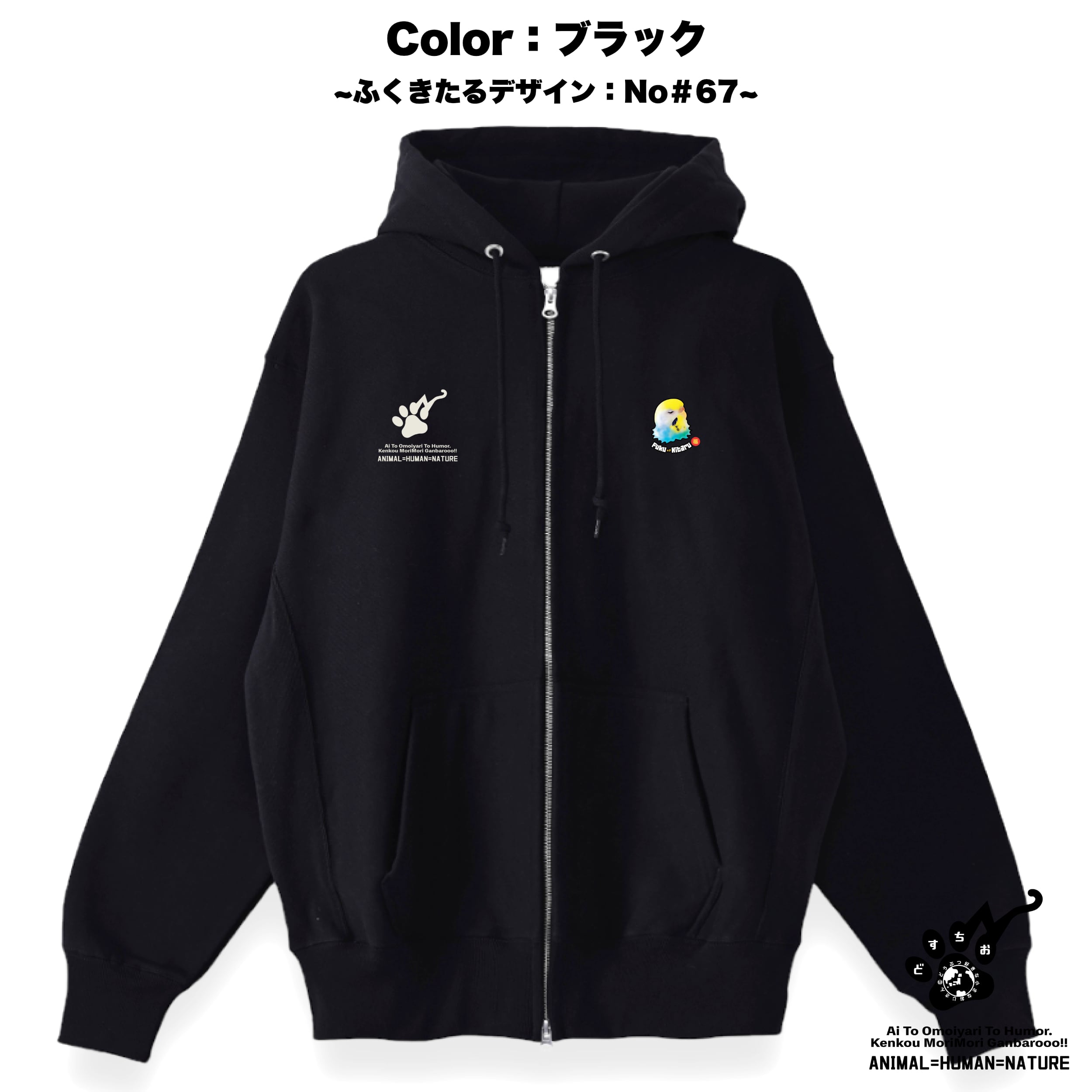ジップアップ パーカー | 裏起毛 厚手 | スウェット | 長袖 トレーナー 【 ふくきたるデザイン x No #67 空さん 】 ねこ 猫 cat アニマル 動物|メンズ・レディース・男女兼用