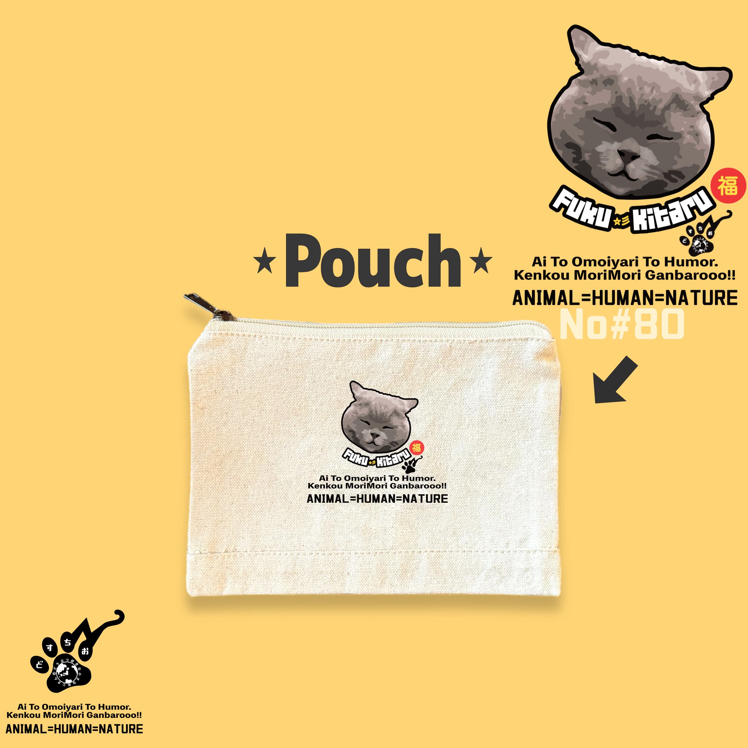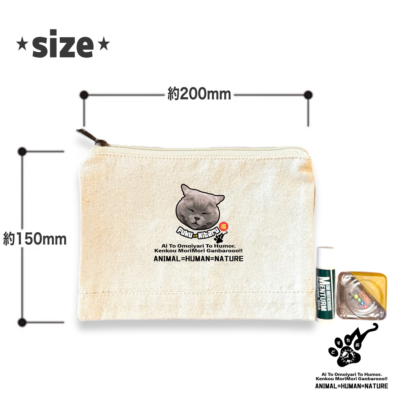 オーガニックコットン ポーチ【ふくきたるデザイン x No #80 ふくさん】|キャンバス生地・ねこ・猫・cat・アニマル・動物|メンズ・レディース・男女兼用