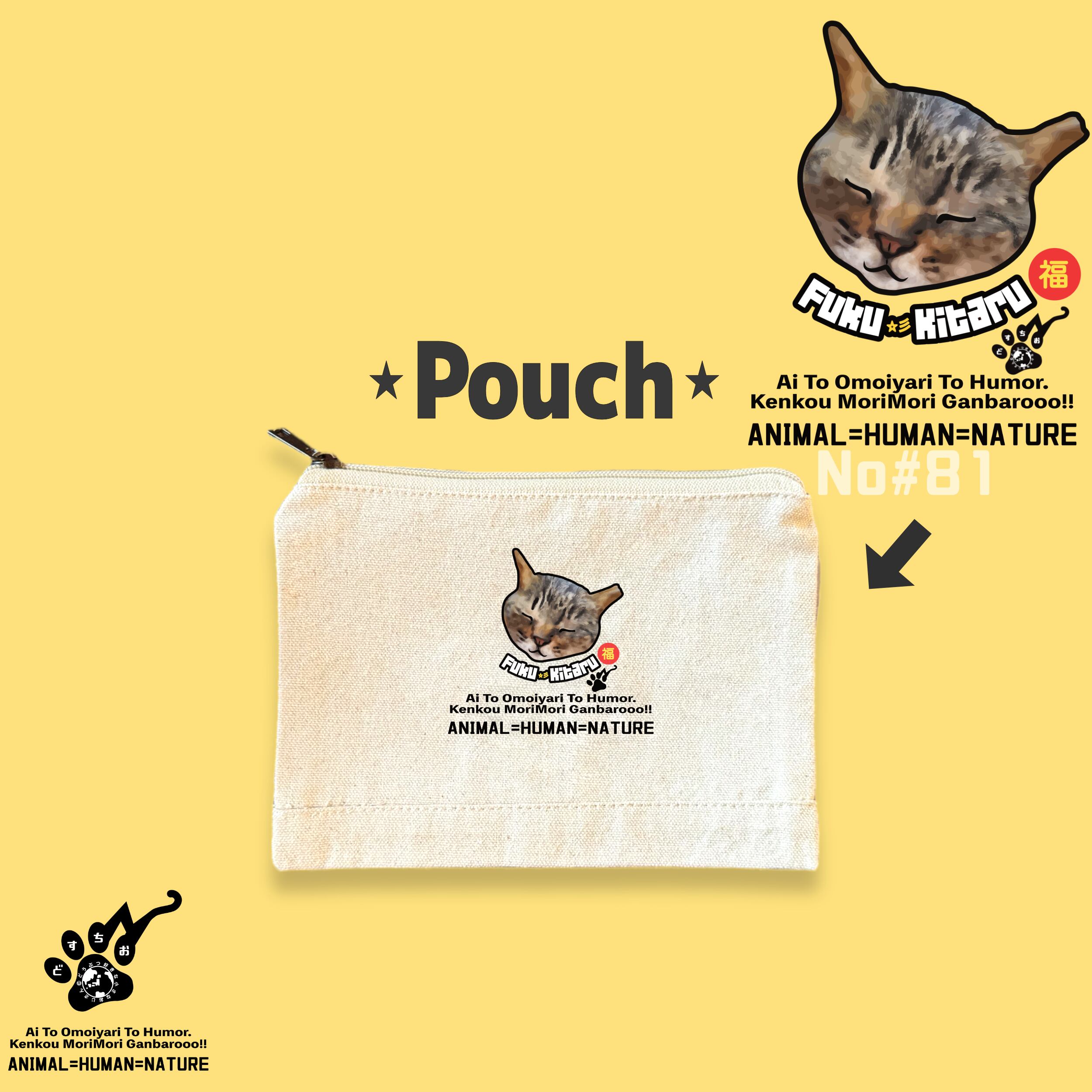 オーガニックコットン ポーチ【ふくきたるデザイン x No #81 とらさん】|キャンバス生地・ねこ・猫・cat・アニマル・動物|メンズ・レディース・男女兼用