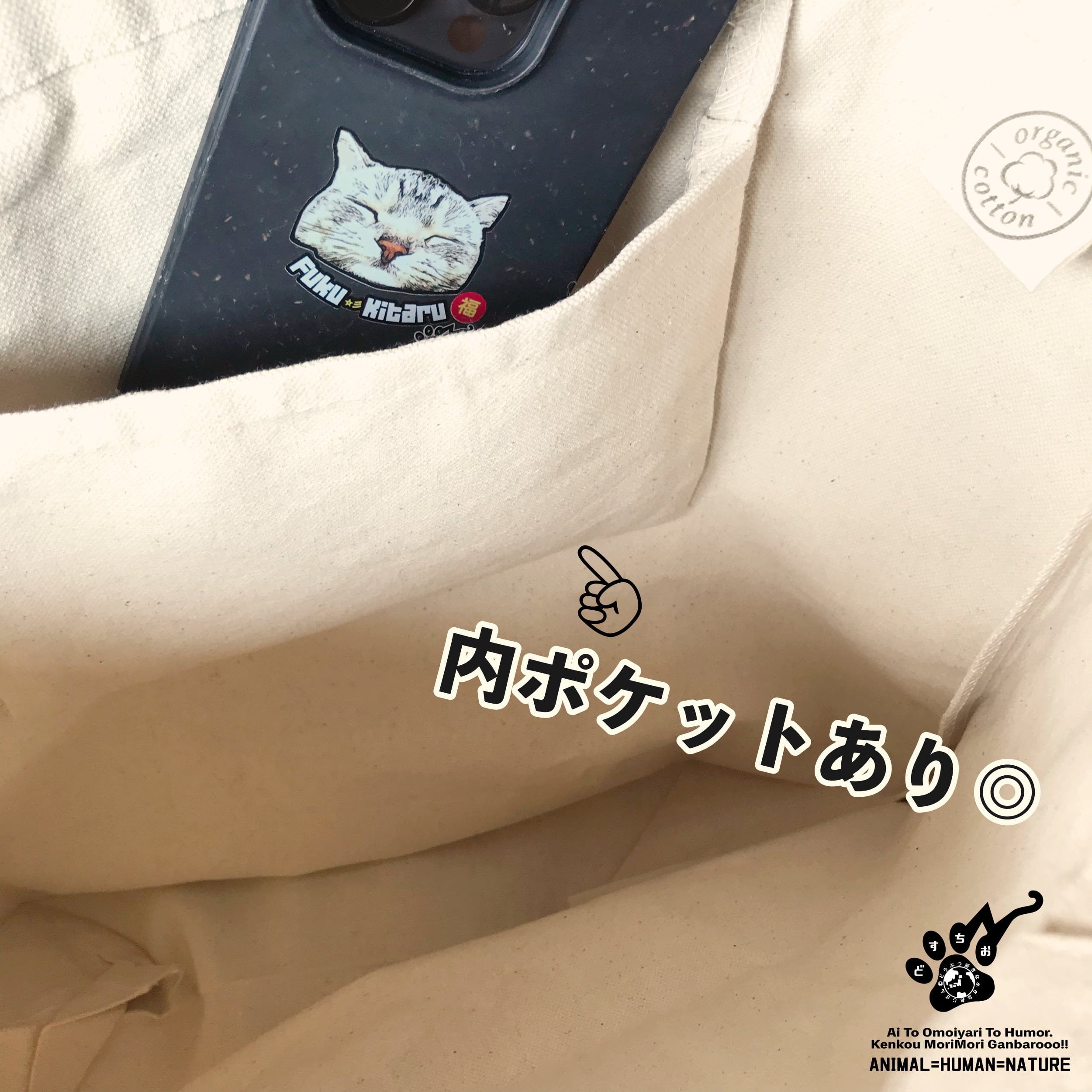 オーガニックコットン トートバッグ 【ふくきたるデザイン x No #81 とらさん】|キャンバス生地・ねこ・猫・cat・アニマル・動物|メンズ・レディース・男女兼用