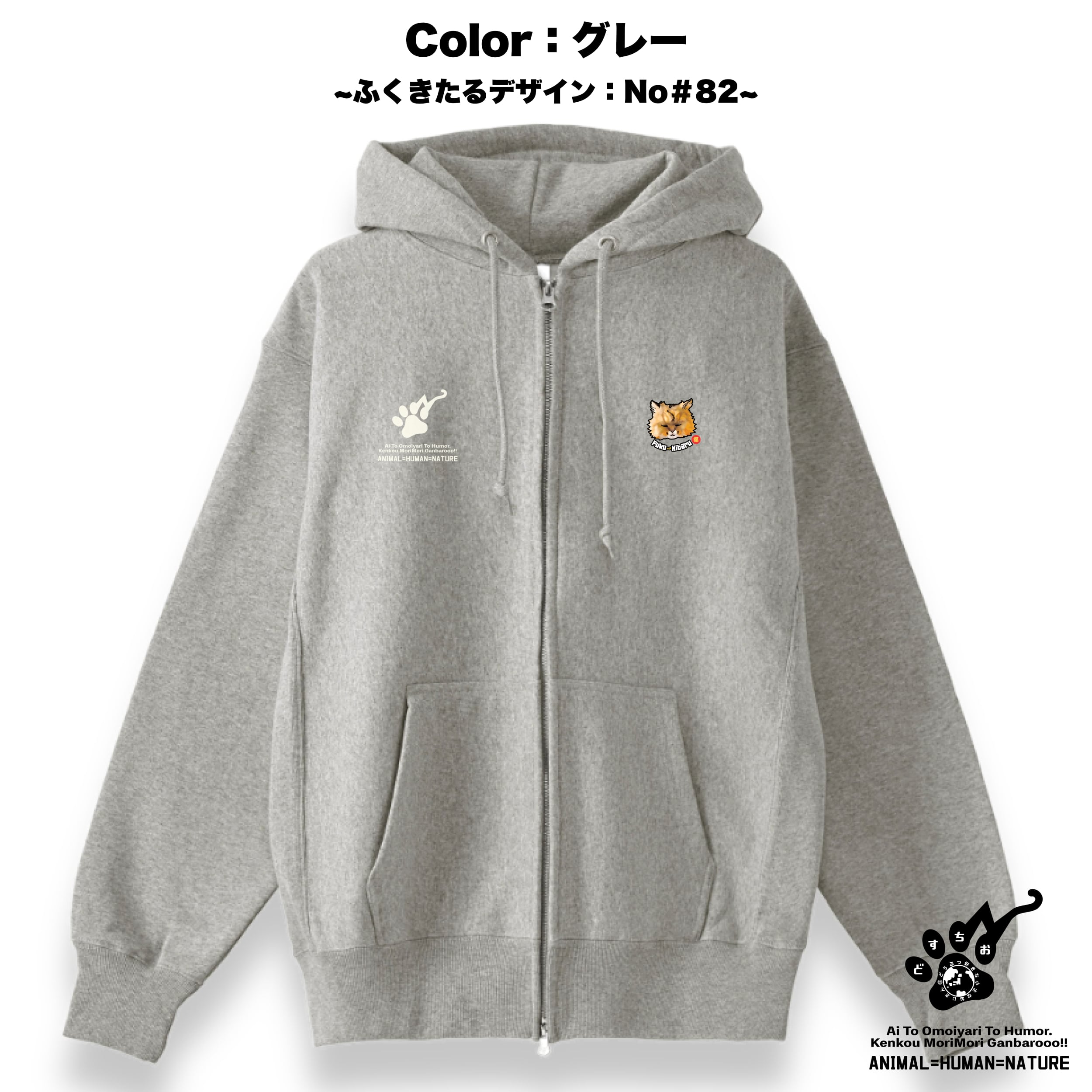 ジップアップ パーカー | 裏起毛 厚手 | スウェット | 長袖 トレーナー 【 ふくきたるデザイン x No #82 テリーさん】 ねこ 猫 cat アニマル 動物|メンズ・レディース・男女兼用