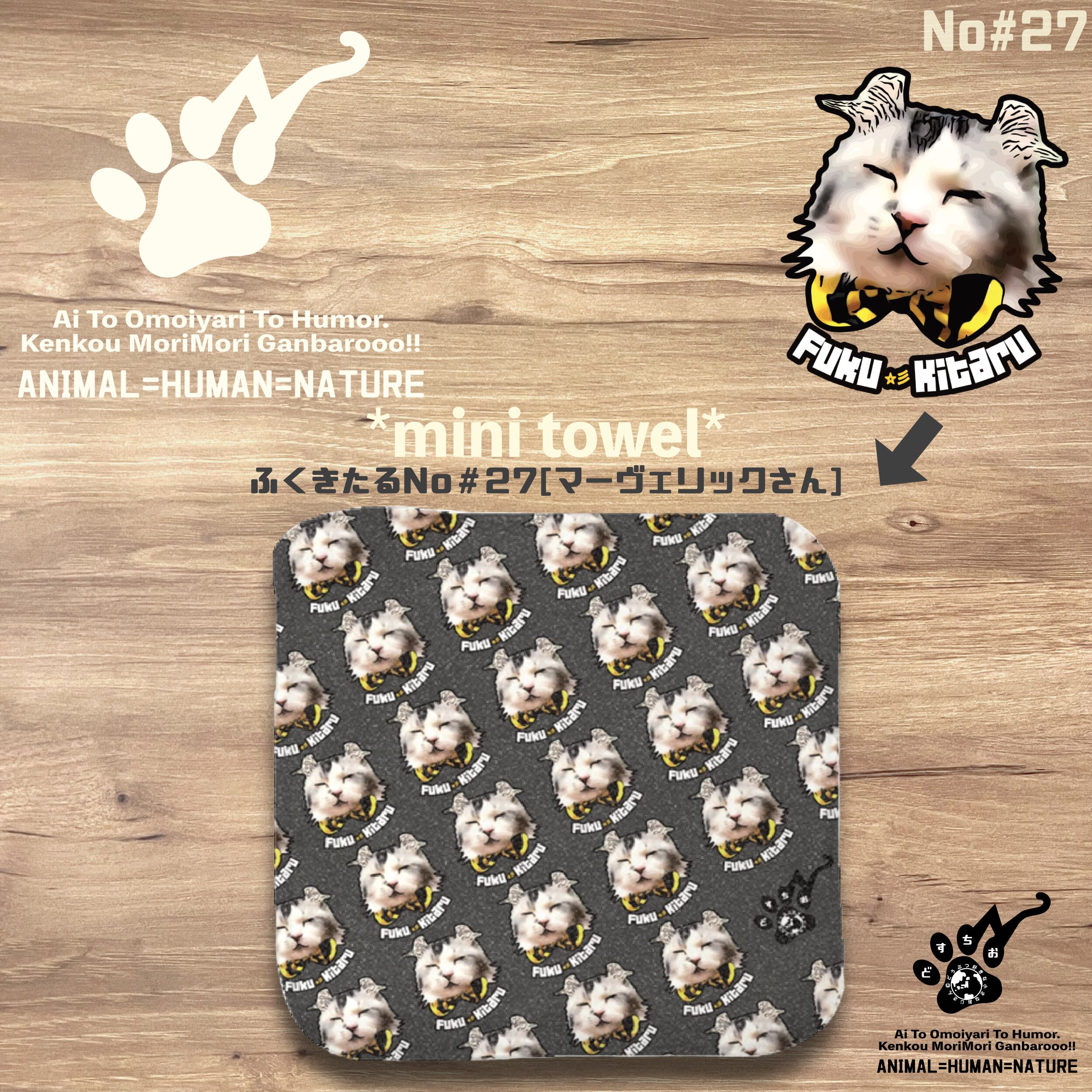 ハンドタオル ハンカチ 【 デザインNo #00 ふくきたる No #27マーヴェリックさん 】 猫 ねこ ネコ アニマル 動物