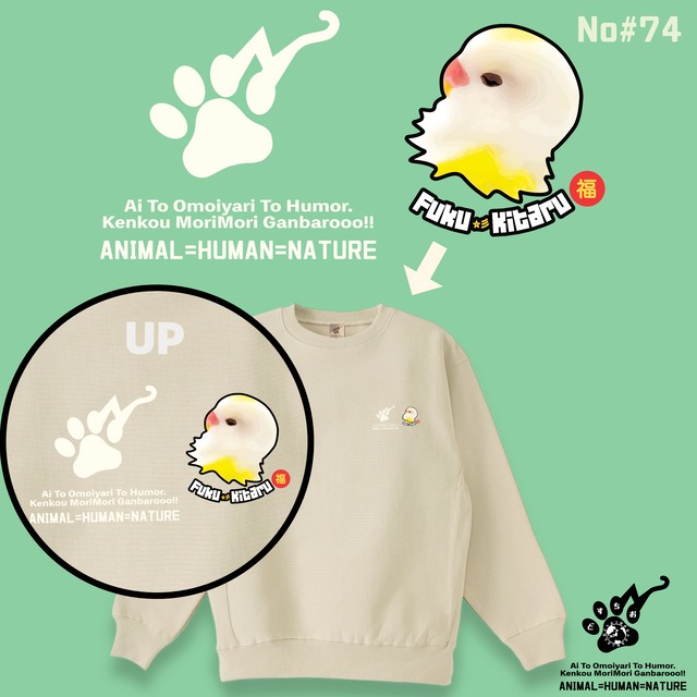 裏起毛 厚手 | スウェット | 長袖 トレーナー 【 ふくきたるデザイン x No #74 モツさん】 鳥・インコ・とり・トリ・動物・アニマル|メンズ レディース 男女兼用